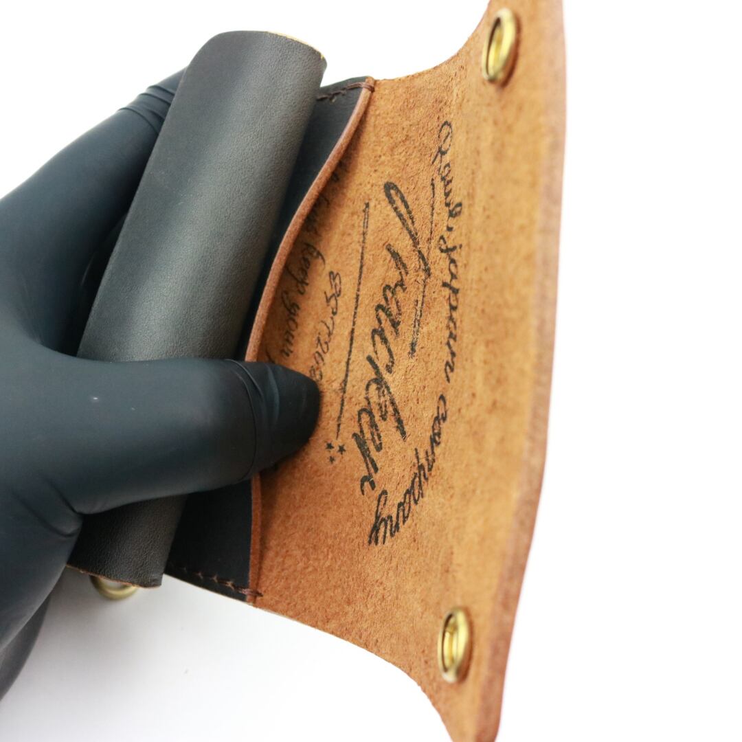 上質な茶芯ワックスレザーを使用し、金具類はすべて真鍮製で仕上げています。